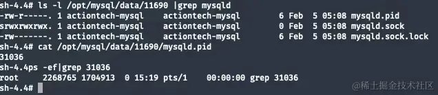 mysqld.pid文件存在,则表示之前确实有一个 mysqld 且进程号为31036的进程被启动了- 进程启动后被自动化用例