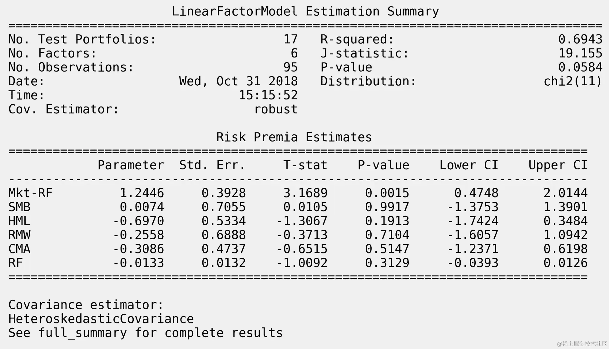 摘要显示,该模型已使用最大似然进行训练,并在 -67.9 处提供了对数似然函数的最大化值。
