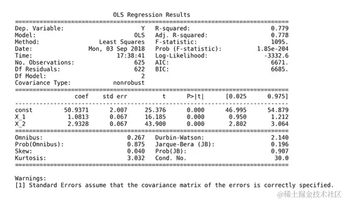Z 统计量在线性回归输出中起着与 t 统计量相同的作用,并且与系数估计和其标准误差的比率一样计算。p 值还指示了在假设 H[0]:β = 0(总体系数为零)的情况下观察到测试统计量的概率。我们可以拒绝这个假设,对于截距、realcons、realinv、realgovt、realdpi和unemp。