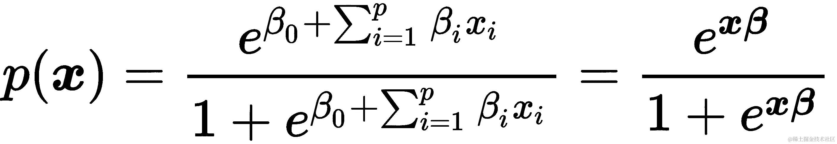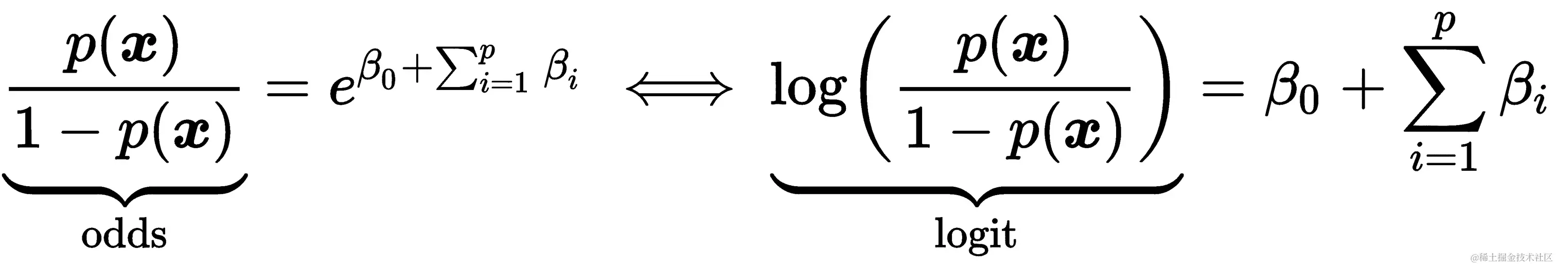 对数几率也称为对数几率(因为它是几率的对数)。因此,逻辑回归表示的对数线性回归 x 看起来与前述的线性回归非常相似。