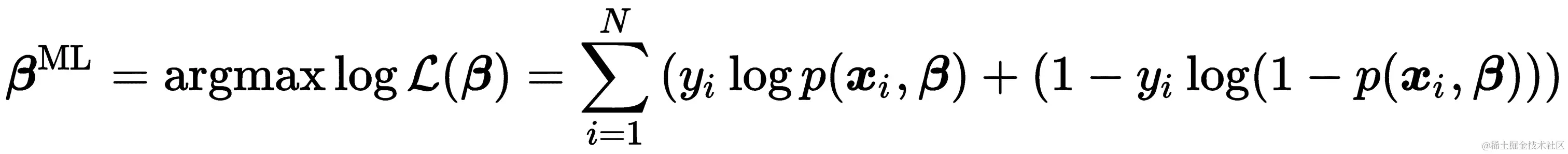 使用总和比乘积更容易,因此让我们两边都取对数,得到对数似然函数和 logistic 回归系数的相应定义: