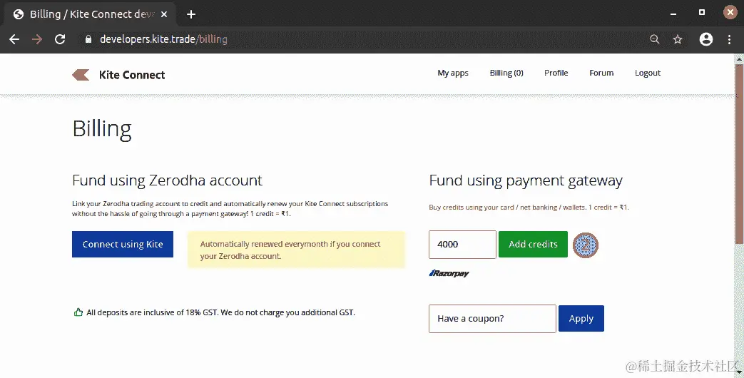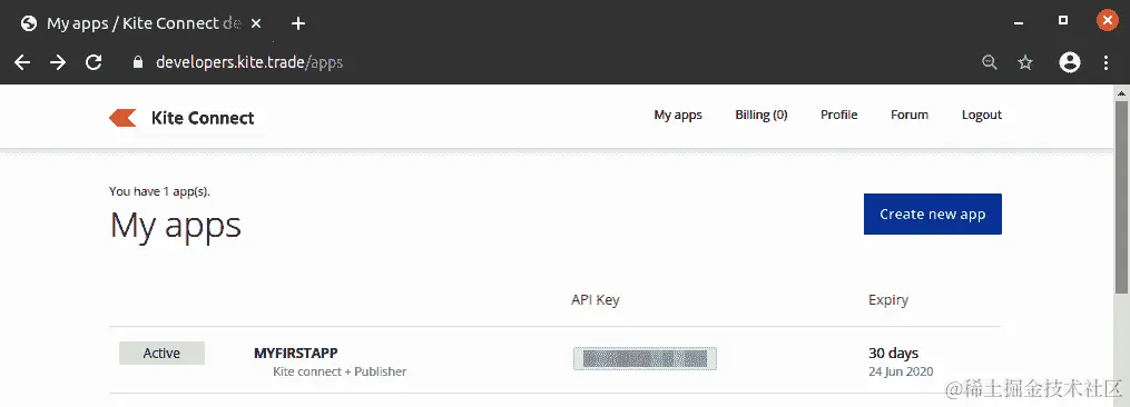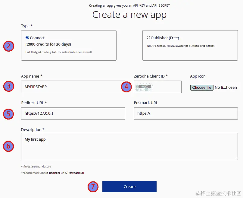 此步骤仅在新的 Zerodha Developer Options 应用程序中发生一次。