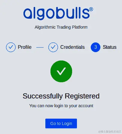 您现在已在该网站上注册。点击 Go to Login 按钮登录到该网站,如下面的截图所示: