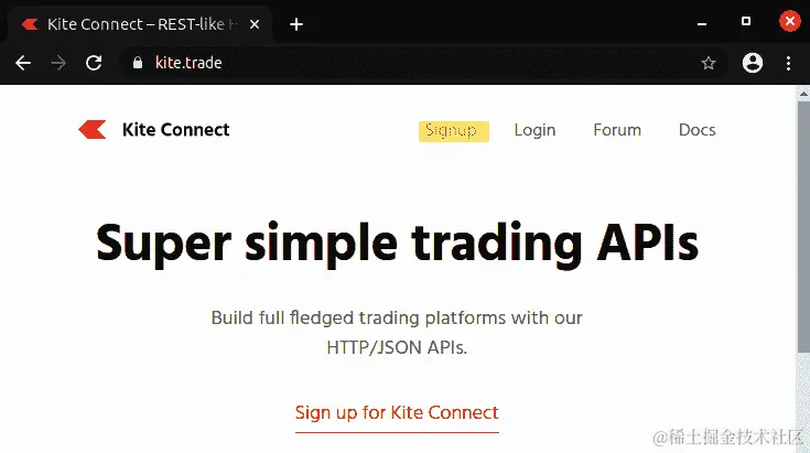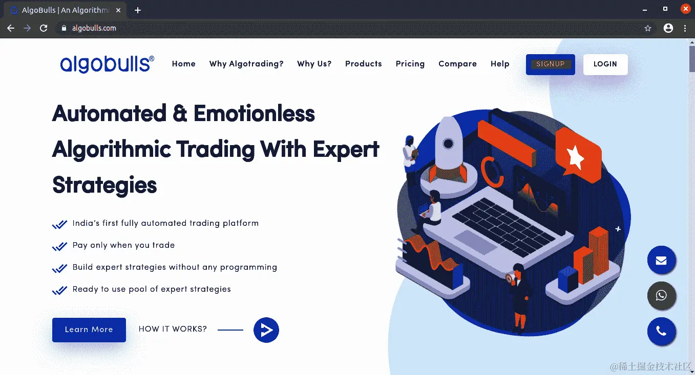 您可以通过转到官方网站algobulls.com,并点击 SIGNUP 注册 AlgoBulls 平台,如下面的截图所示: