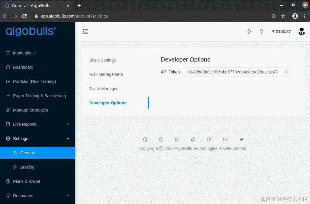 获取您的 AlgoBulls 开发者选项令牌