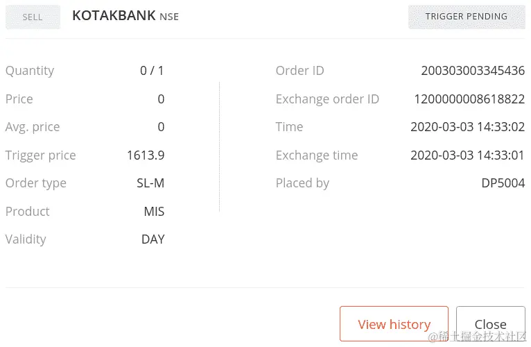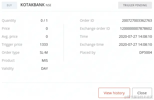 trigger_price:这是下单的触发价格。我们在这里传递ltp+1,表示高于ltp的1单位价格。