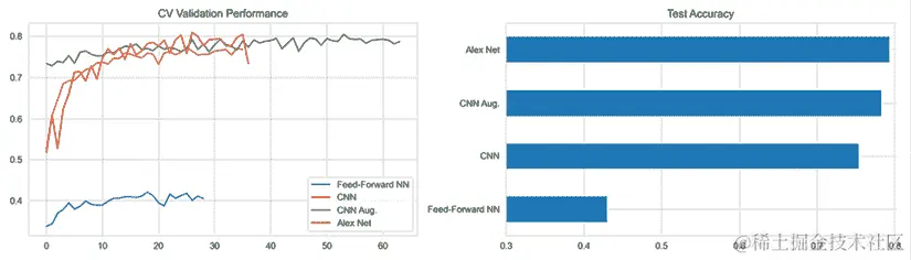 右侧绘制了所有网络的每个参数的 top-1 准确度。几种新的架构针对了在诸如手机等性能较低的设备上的用例。虽然它们没有达到最先进的性能,但它们找到了更有效的实现方式。有关这些架构及其图表背后的分析的更多详细信息,请参阅 GitHub 上的资源。