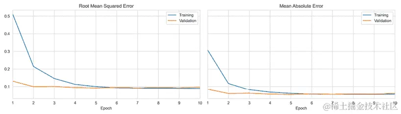 均方误差仅在 4 个时期内改善,如图 19.17左侧面板所示: