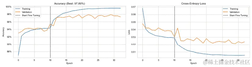 使用提前停止,我们每次对 32 个观测值的批次进行最多 100 个时期的训练:
