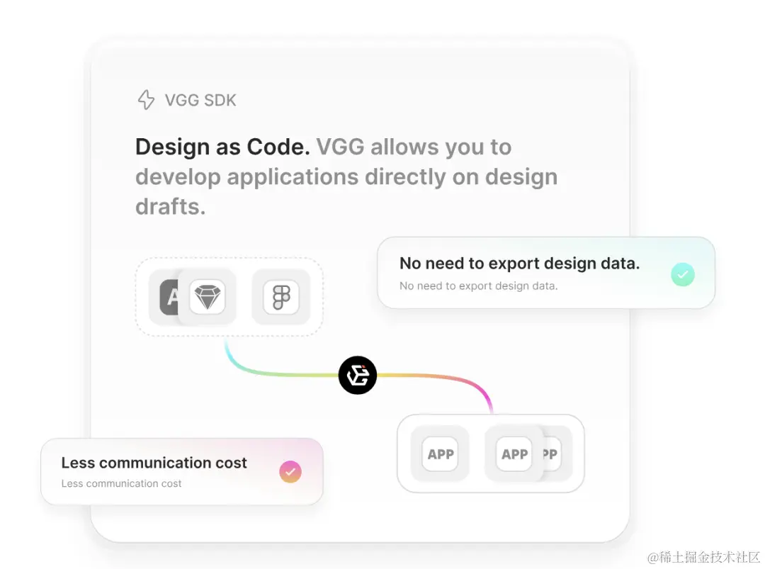 - 并且 VGG 将设计稿变成了跨平台的应用,为开发者节约了更多的时间与成本。