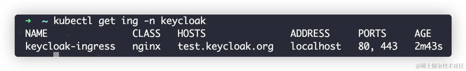 通过如下命令,将 Keycloak 的服务访问 Service 转发至本地: