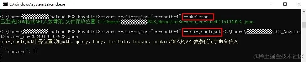 最近,我还发现KooCLI新上线了生成JSON格式API入参骨架的功能,在命令中添加“--skeleton”参数即可在本地环境生成骨架JSON文件。生成的模板包含命令支持的所有参数及描述,可以将不需要的参数删除。将修改好的文件模板文件传递到--cli-jsonInput参数,即可使用填写的参数运行命令,又提升了工作效率。