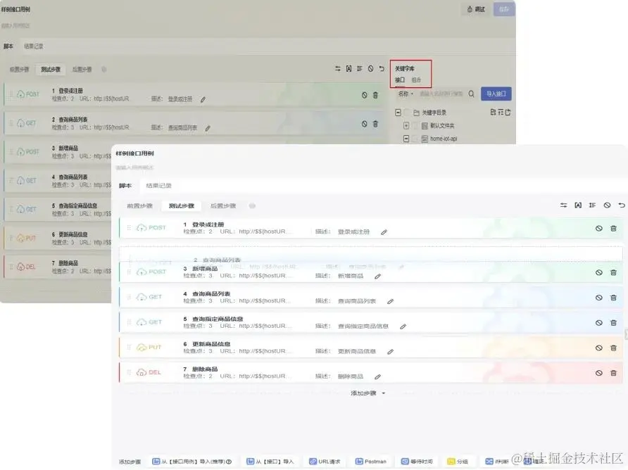同时提供关键字库将接口关键字、组合关键字、系统关键字三种类型的测试关键字进行统一管理,从而将原本繁琐复杂的API测试工作变得既高效又简单易行,显著改善了测试人员的工作体验和产出质量。