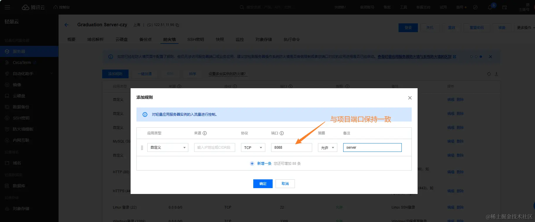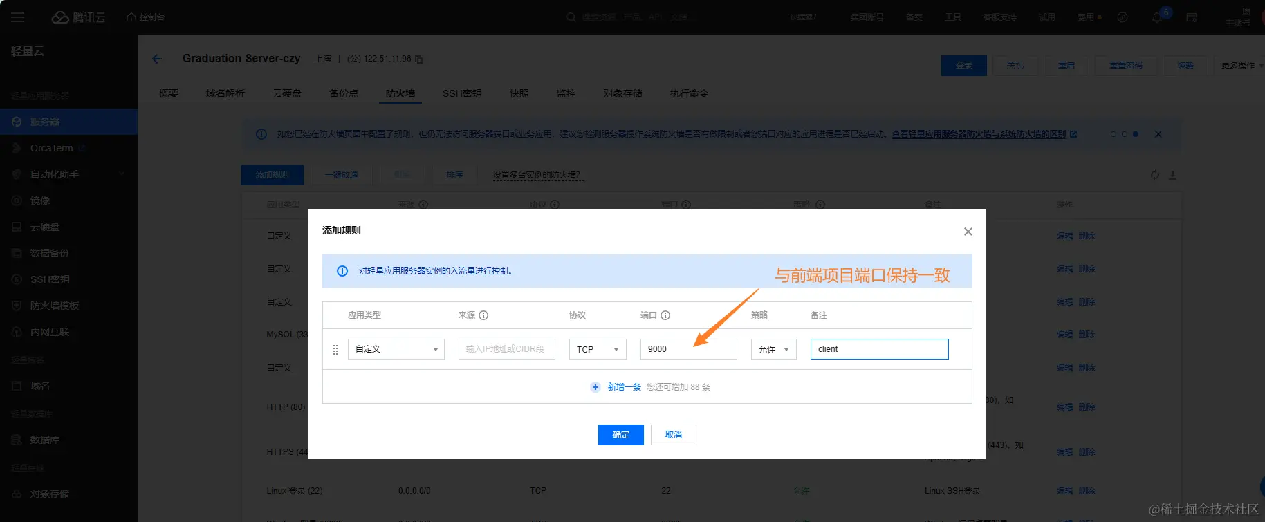 与之前类似,放行koa项目的端口,端口号与项目端口保持一致