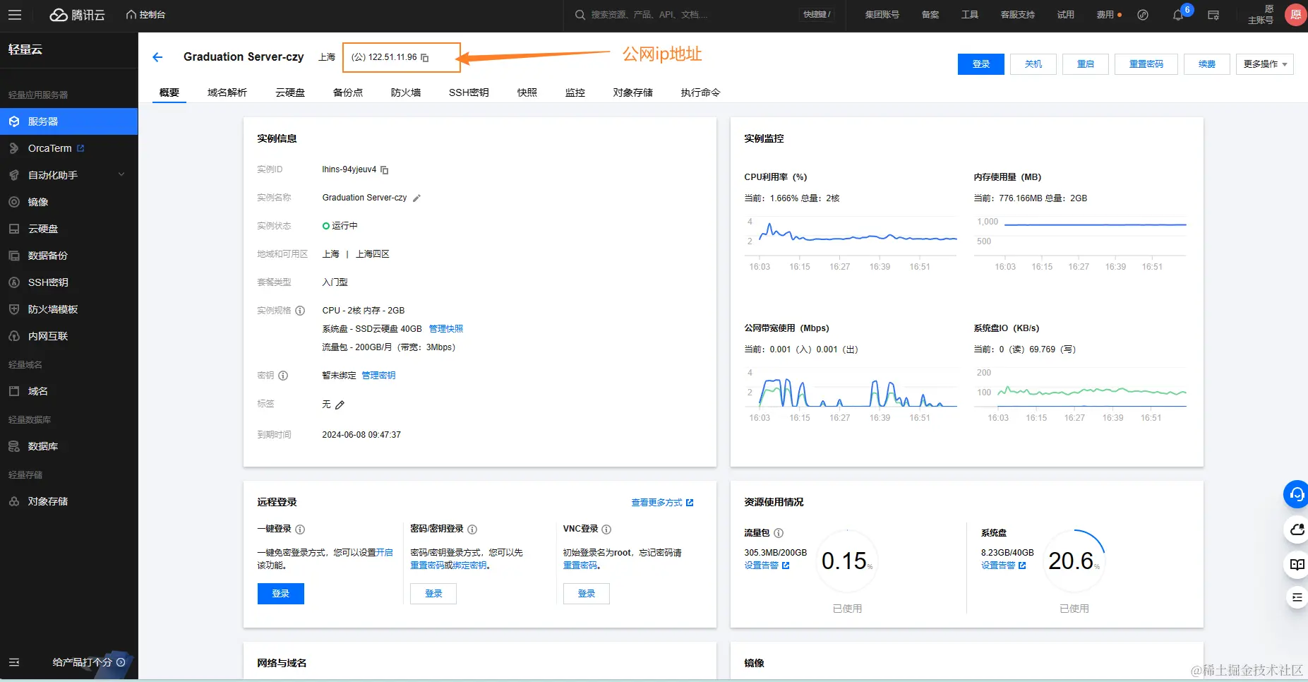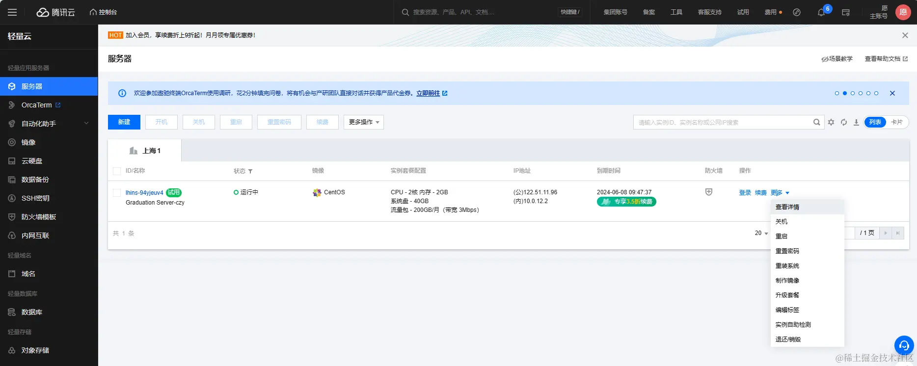 进入控制台后,点击更多-查看详情,可查看已创建服务器的详情