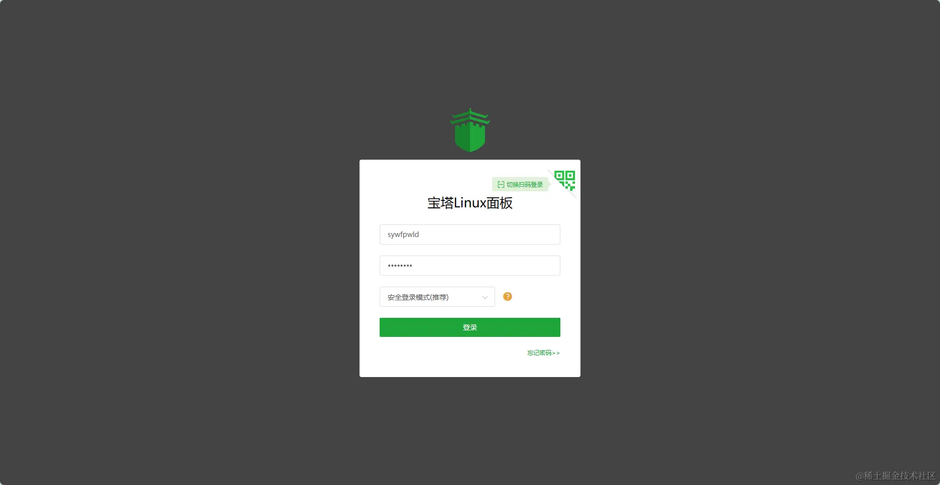 3、登录宝塔面板