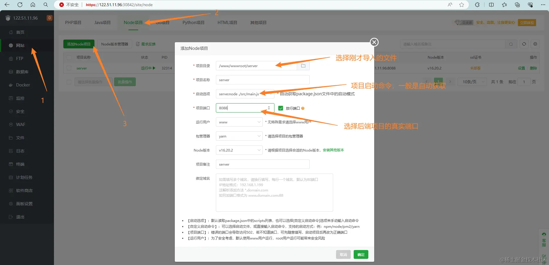 点击文件 -> 点击Node项目 -> 点击添加Node项目,按下面的图片填写信息