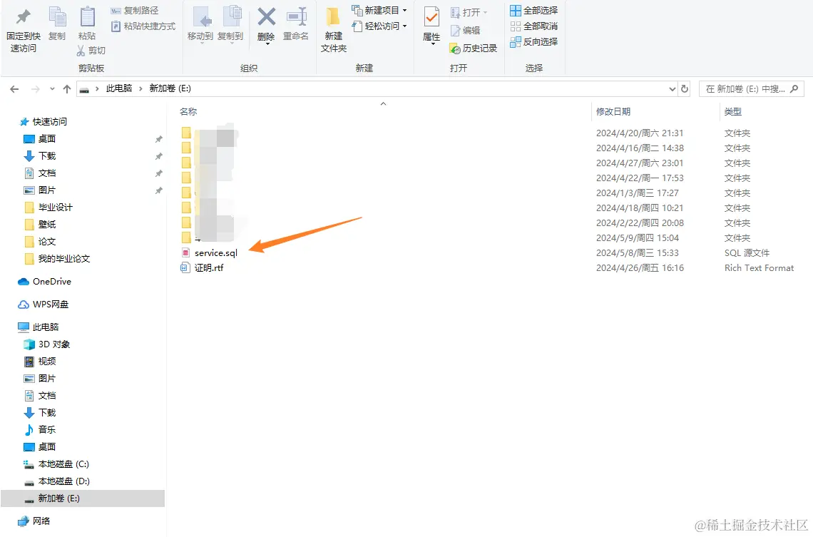在文件夹中找到保存的sql文件,重命名文件,与后端项目配置的数据库名称保存一致。