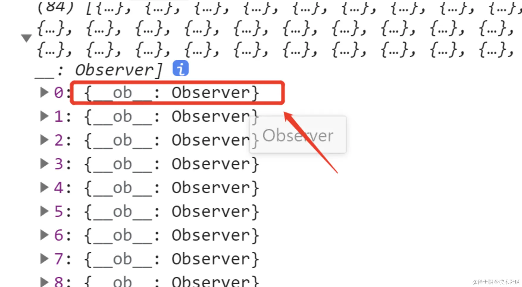 __ob__: Observer是 Vue 对数据监控添加的属性。- 如果你是使用 push添加的对象信息就会出现_