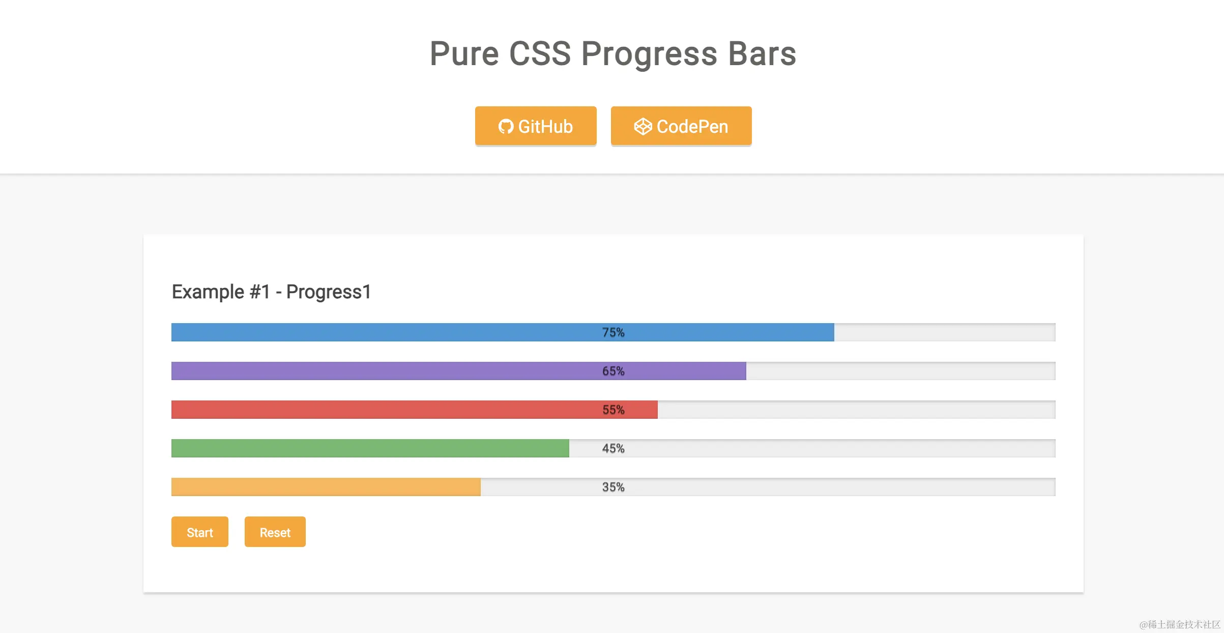 @rkchauhan提供了一个纯CSS实现的各种不同效果的进度条,其中很多就离不开渐变: