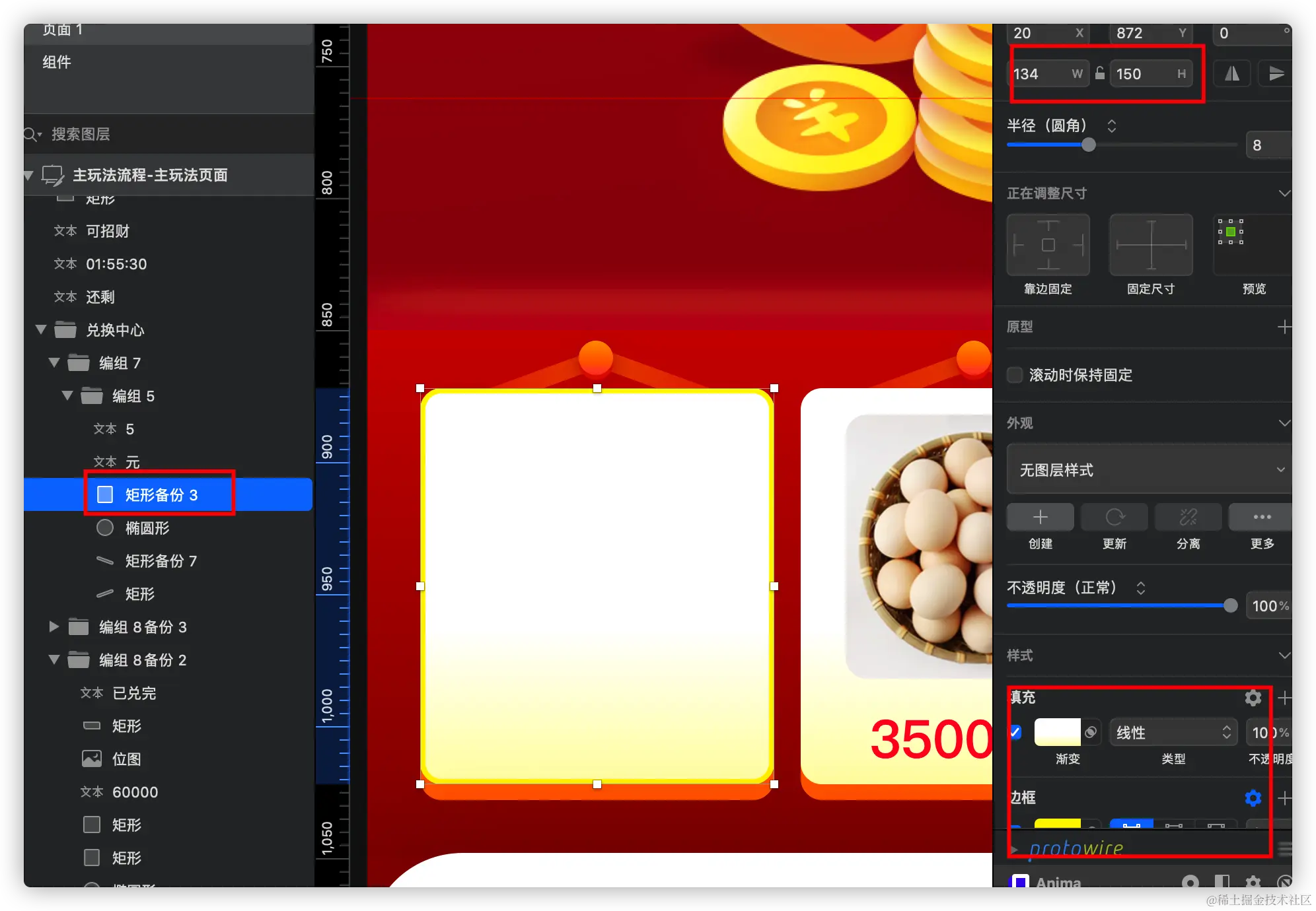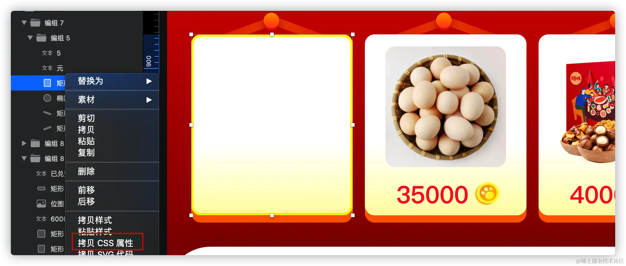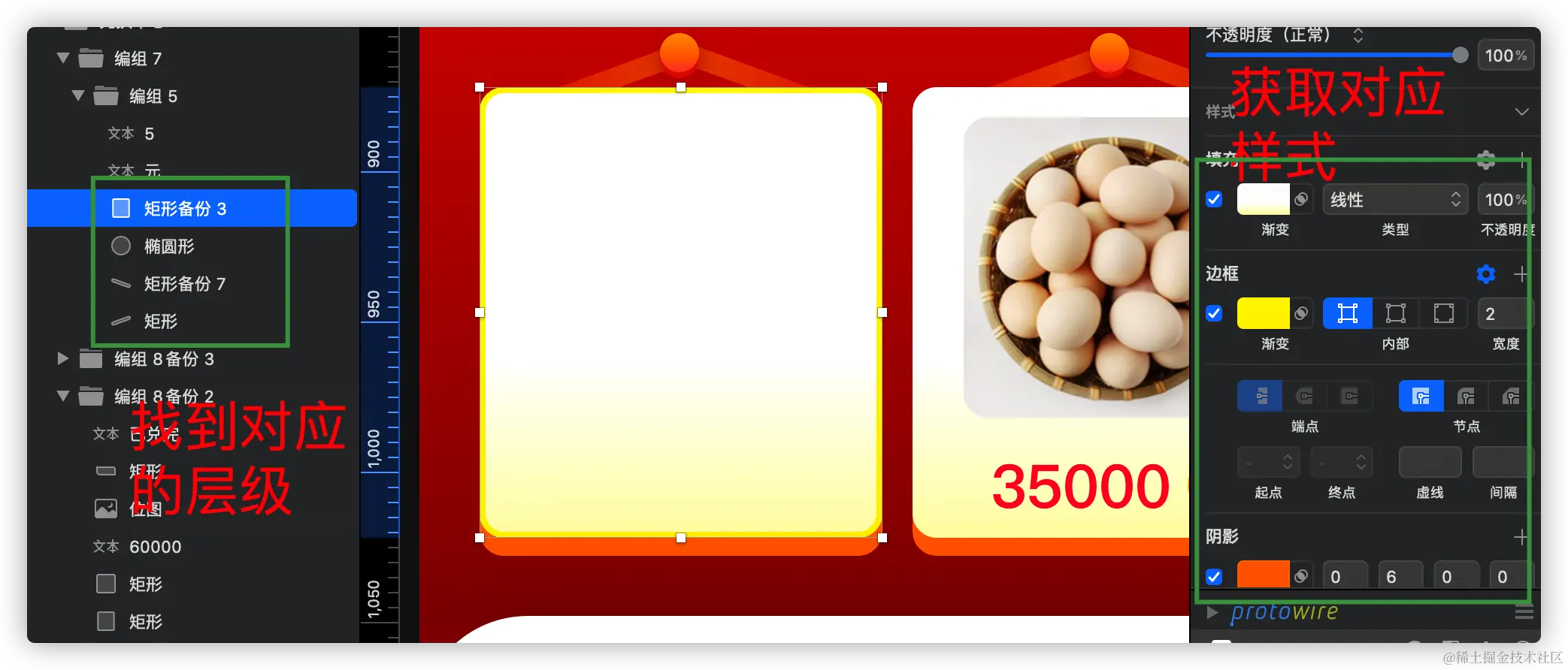 在Sketch软件中选中对应的图层,可以获取到相应信息: