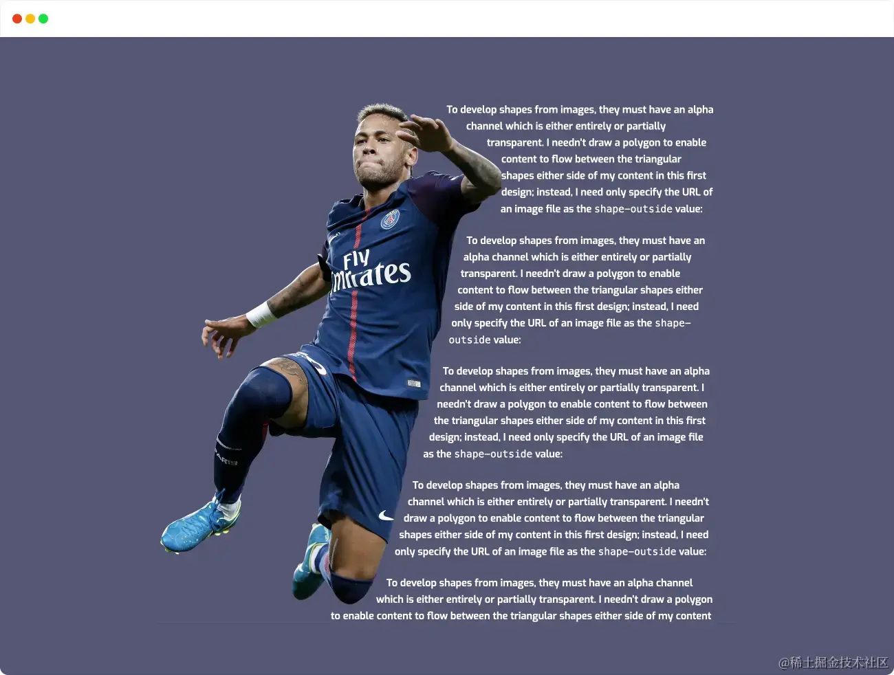 在布局方面也有独到之处,特别是和CSS的Shape相关属性结合在一起可以实现一些异形布局效果: