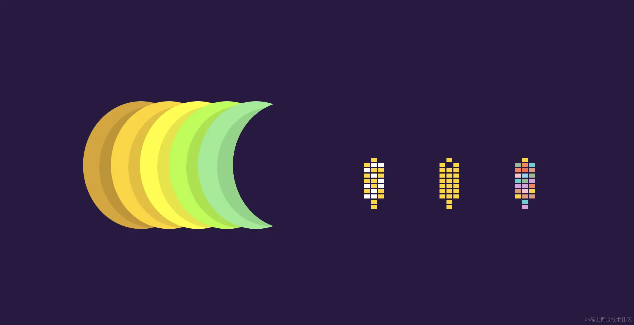 除此之外,CSS的渐变特性和background-size、background-clip等背景属性结合在一起也能绘制出一些具有创意的图形效果: