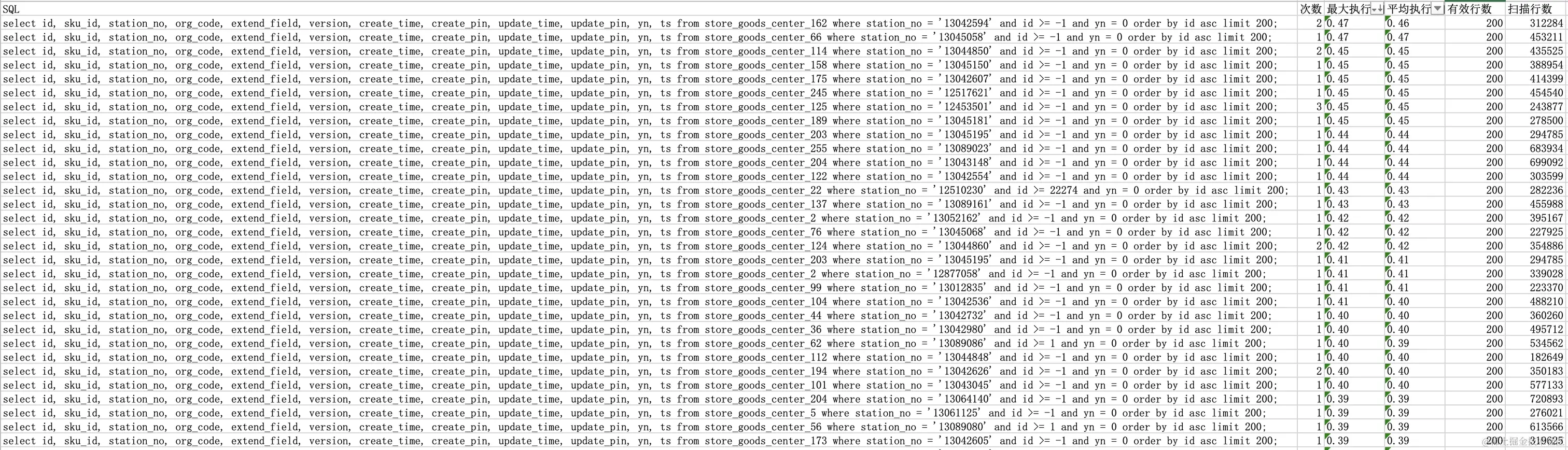 在回顾刚才的问题时,我们发现问题源于原始索引产生了【Using filesort】,从而导致了慢查询的出现。为了解决这个问题,我们新增了一个索引,即【KEY idx_station_no_and_id (station_no, id)】,以替代原有的索引【UNIQUE KEY uniq_storegoods (station_no, sku_id)】。然而,尽管新增索引后大部分慢查询得到了解决,但仍有部分慢查询未能消除。进一步分析发现,这些慢查询是由于SQL没有使用我们期望的索引,而是使用了老索引,从而引发了【Using filesort】问题。在通过explain进行分析后,我们暂时还没有找到合适的解决方案。
