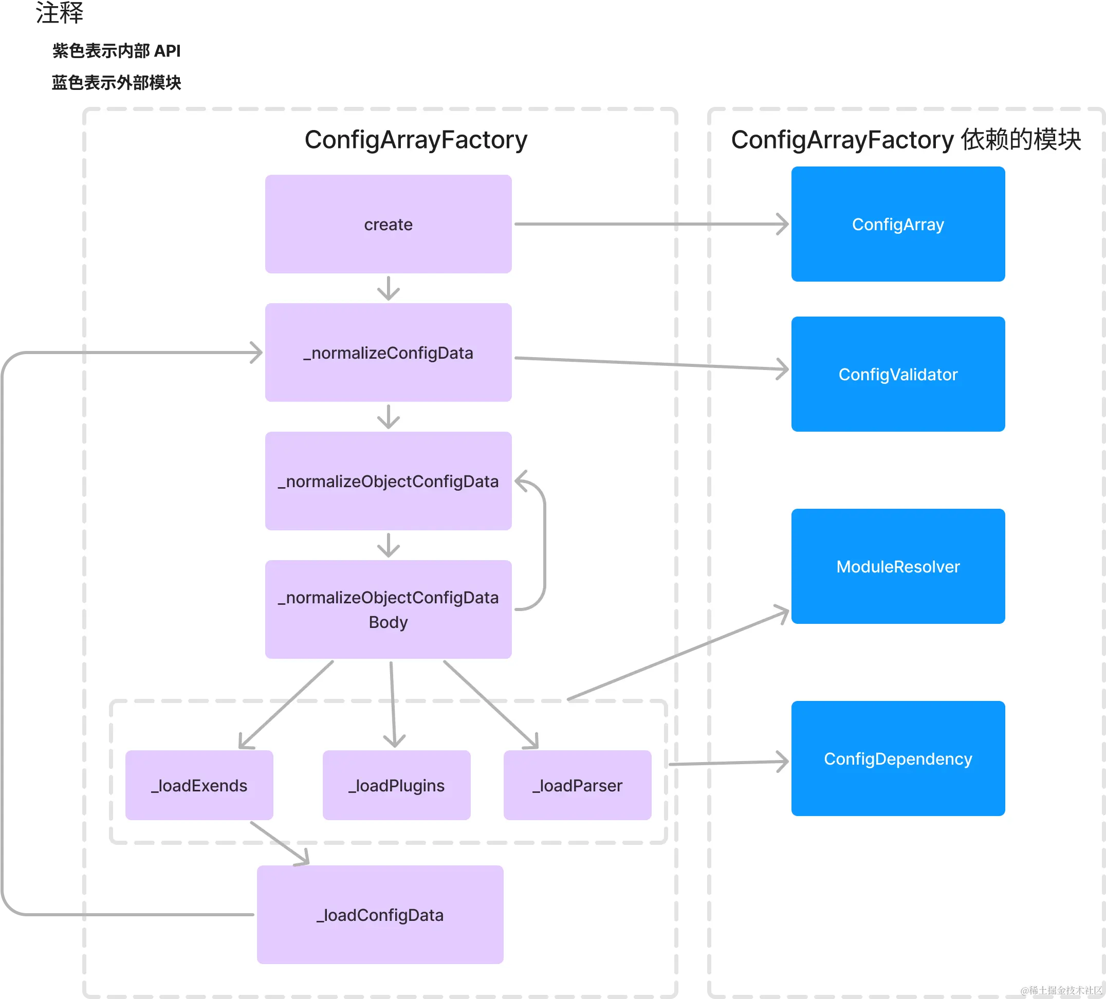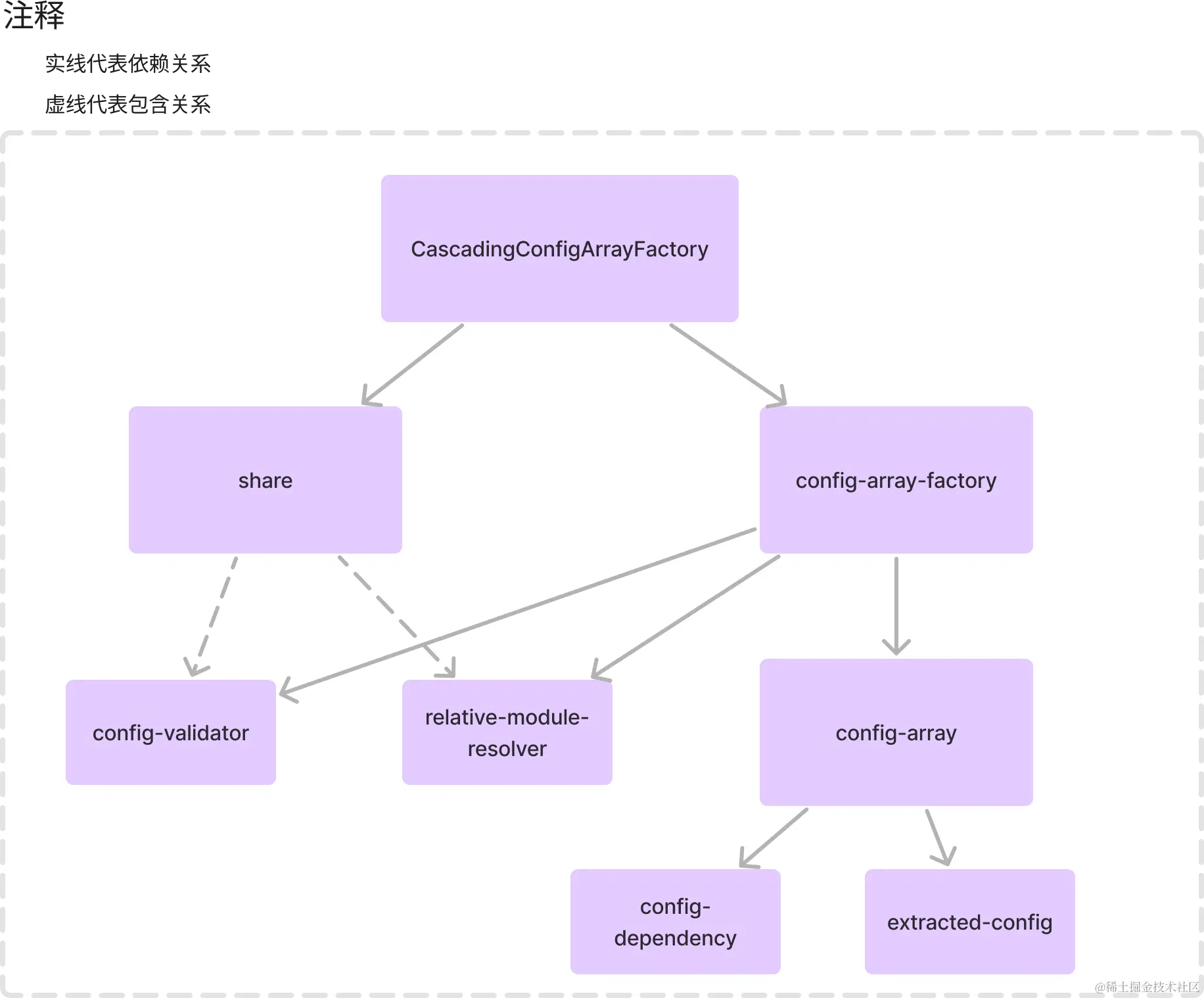 - CascadingConfigArrayFactory 作为 ESLint CliEngine 消费的实例,是整个配置加载模块的入口,它依赖了 ConfigArrayFactory