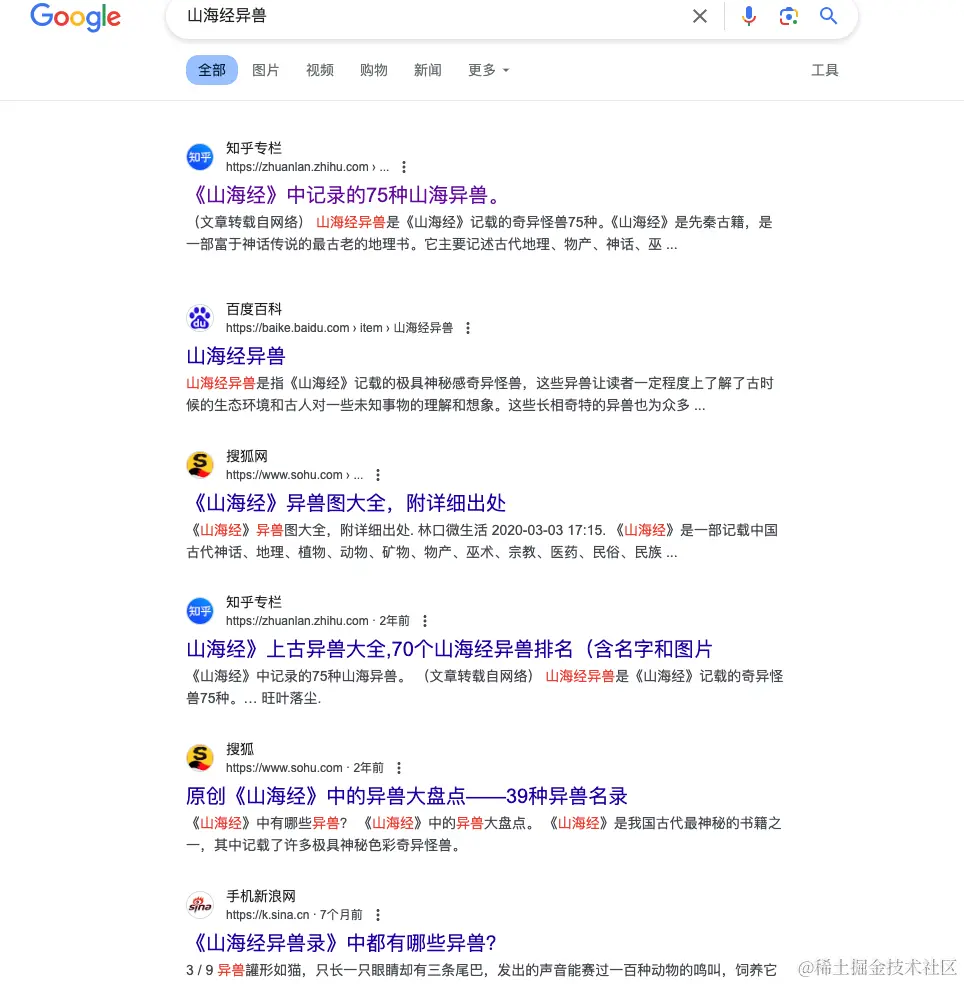 直接通过 google 查阅山海经异兽,多查看几个排行靠前的几个