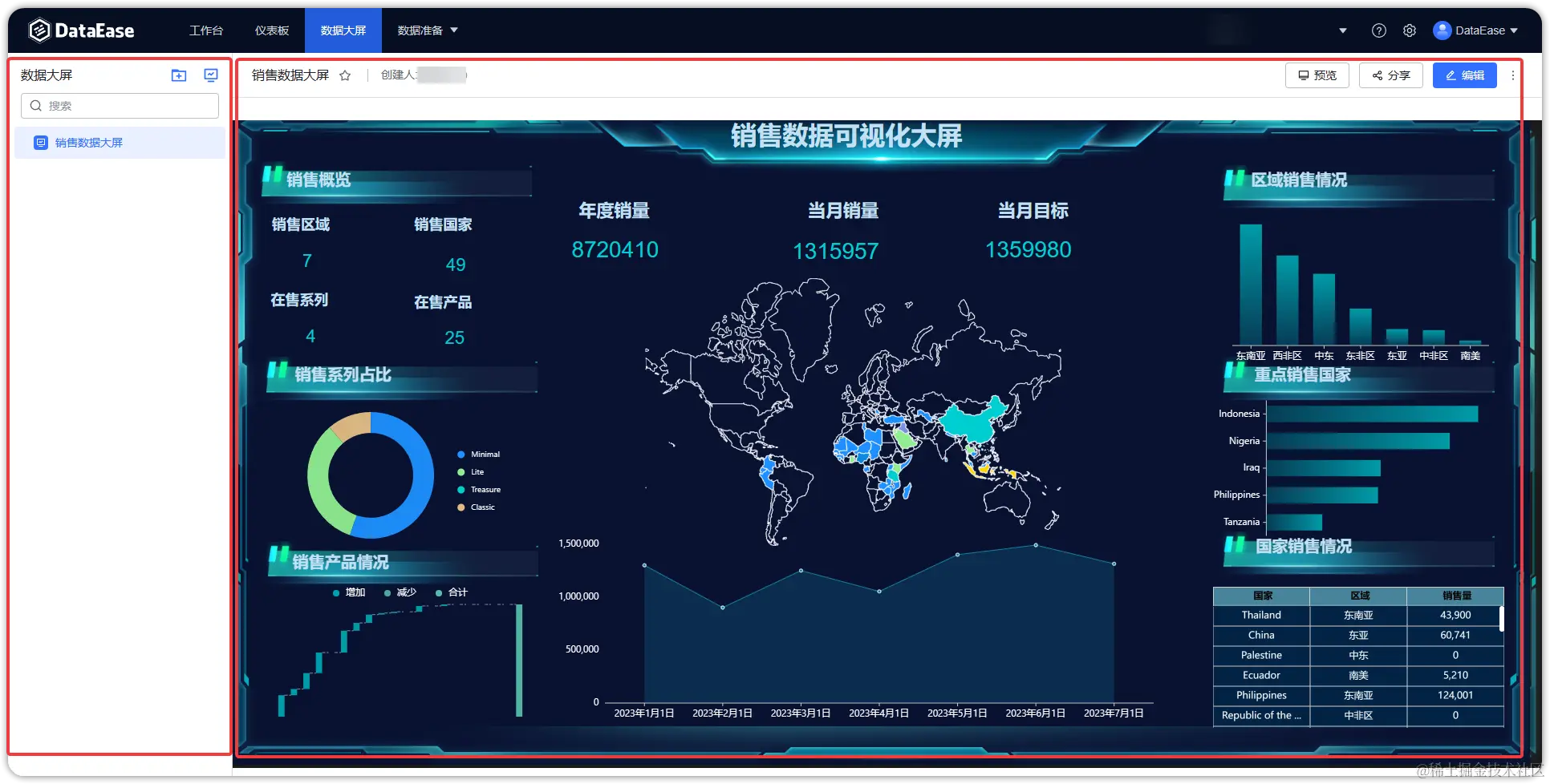 这个项目叫DataEase,(注意不要把 E 看成 B 哦)是开源的数据可视化分析工具( BI 工具 ),帮助用户快速分析数据并洞察业务趋势,从而实现业务的改进与优化。DataEase 支持丰富的数据源连接,能够通过拖拉拽方式快速制作图表,并可以方便的与他人分享。