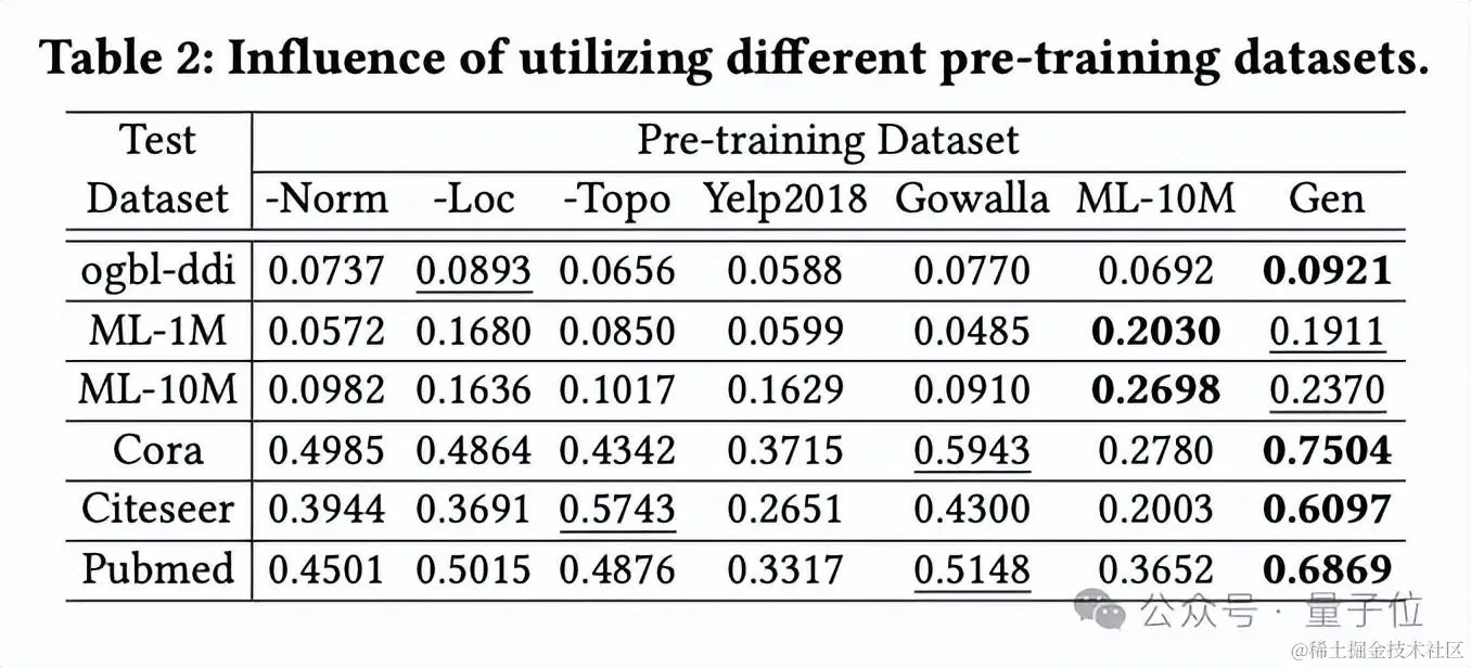 团队调查了不同预训练数据集对 OpenGraph 性能的影响,包括使用基于 LLM 的知识蒸馏方法生成的数据集,以及几个真实数据集。