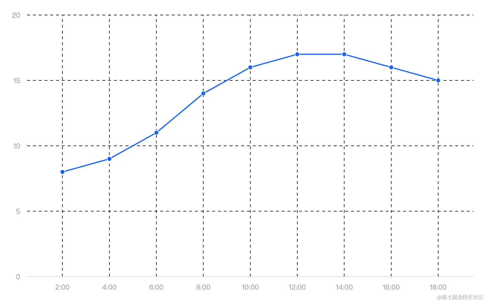 在 VChart 里,坐标轴网格线样式的配置项是 axes[i].grid.style。你可以通过配置 lineDash 属性将实线调整为你想要的虚线效果。
