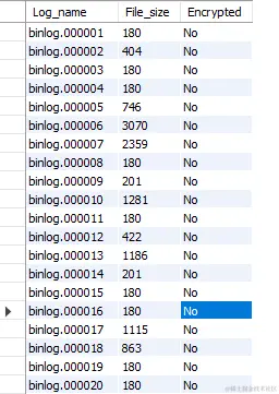 我们可以通过下面的命令查看全部的 binlog 文件,在这里,一个 binlog 版本就是一个文件: