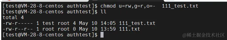 练习:有111_test.txt文件,修改文件的权限为‘-rw-r-----’
