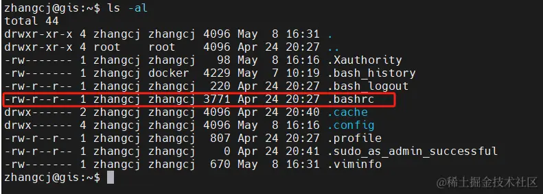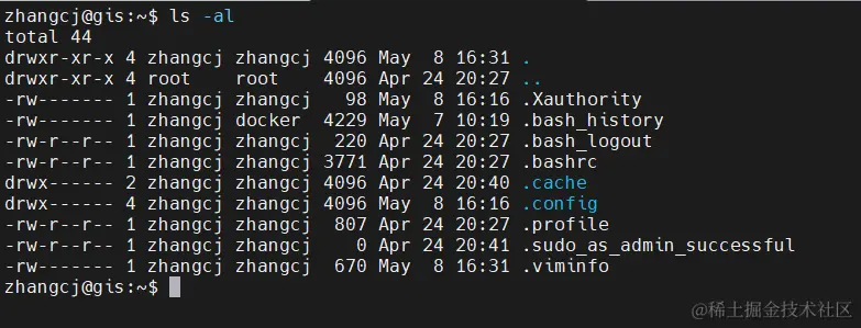 ls 显示文件的文件名和相关属性 -al则表示列出所有文件的详细权限与属性,包含隐藏文件