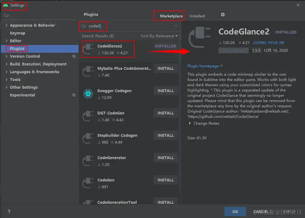 File —> Settings —> Plugins —> Marketplace —> 搜索插件 —> INSTALL下载