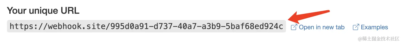 将此 URL 复制下来,就可以作为 Webhook 来使用,此处的样例为 webhook.site/995d0a91-d7…。