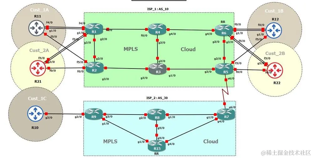 ABR位于OSPF AS(Autonomous System)内,连接不同的OSPF区域,负责在不同区域之间传递路由信息。当ABR收到来自一个区域的路由信息时,它会生成Network-summary-LSA,并将这些路由信息汇总后传播到其他区域。这样,不同区域之间的路由器就能了解到彼此的网络段路由信息,从而实现了跨区域的路由通信。