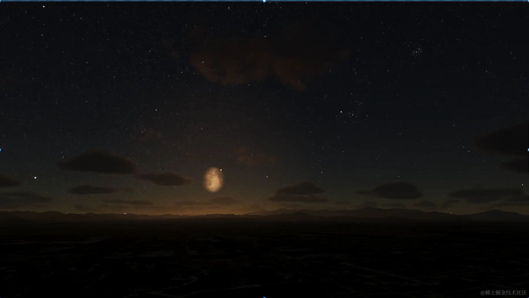 2.基于物理渲染的夜景大概率是全黑的,除了星星和月亮,没有太多细节。