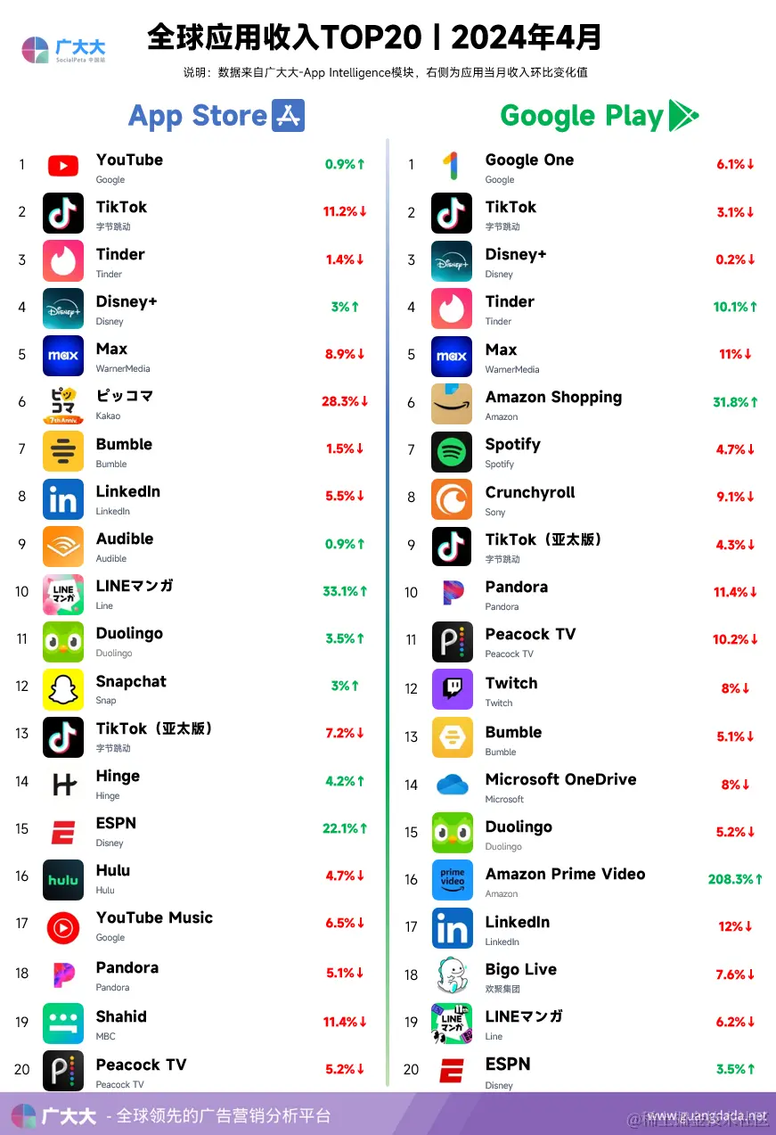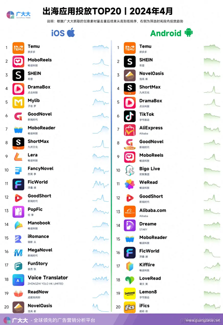 以上便是2024年4月成功出海应用App投放榜单,以及App Store和Google Play非游戏类应用的收入、下载榜单。