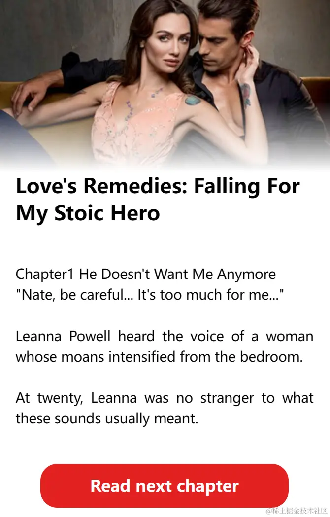- 热门投放素材和此前的网文产品并无太多差别,基本是以冲突场景和暧昧氛围塑造为主,落地页则和国内微信小程序推文广告类似,以首图+开头章节+红色转化按钮的组合为主。