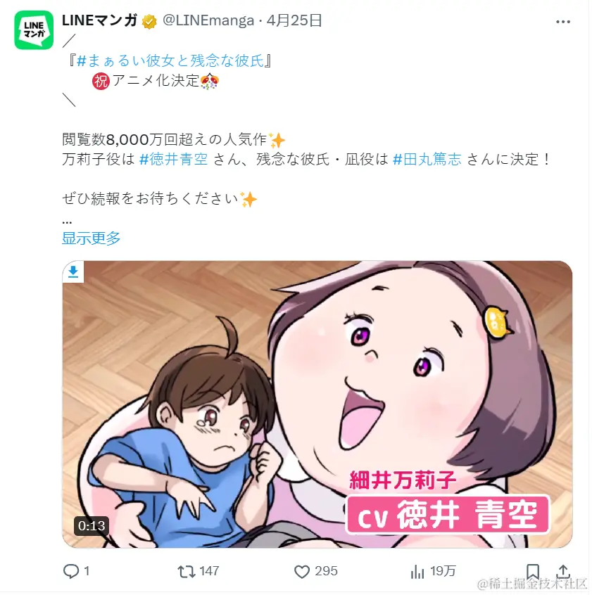 浏览量超过8000万次的人气漫画《まぁるい彼女と残念な彼氏》公布动画化决定,头部漫画平台【LINEマンガ】借此机会也开始再推该漫画集,配合官方4月不断展开的“无料观看”以及抽奖等活动,带动产品营收飙升,其4月App Store营收环比增长约33.1%。
