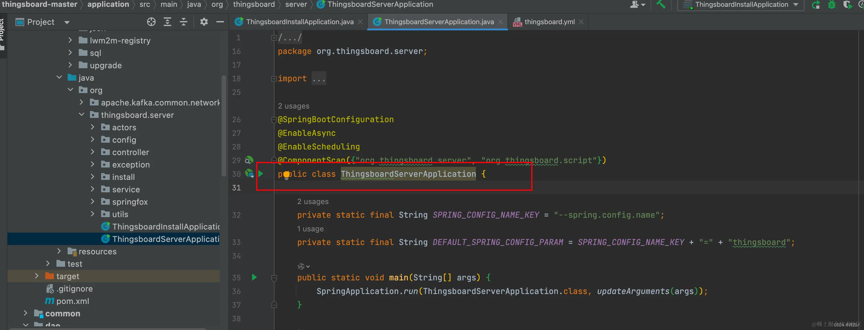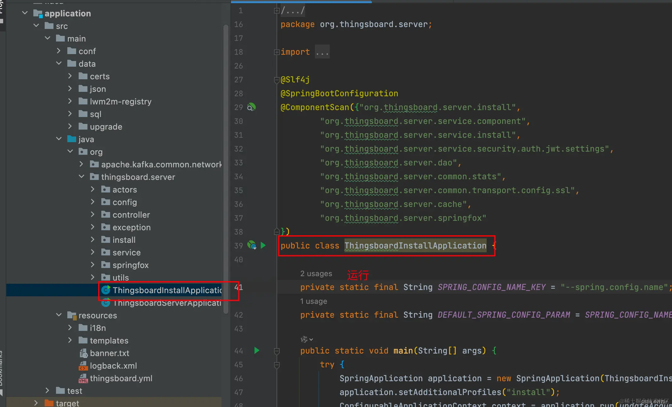 5、运行 ThingsBoardInstallApplication进行数据库初始化