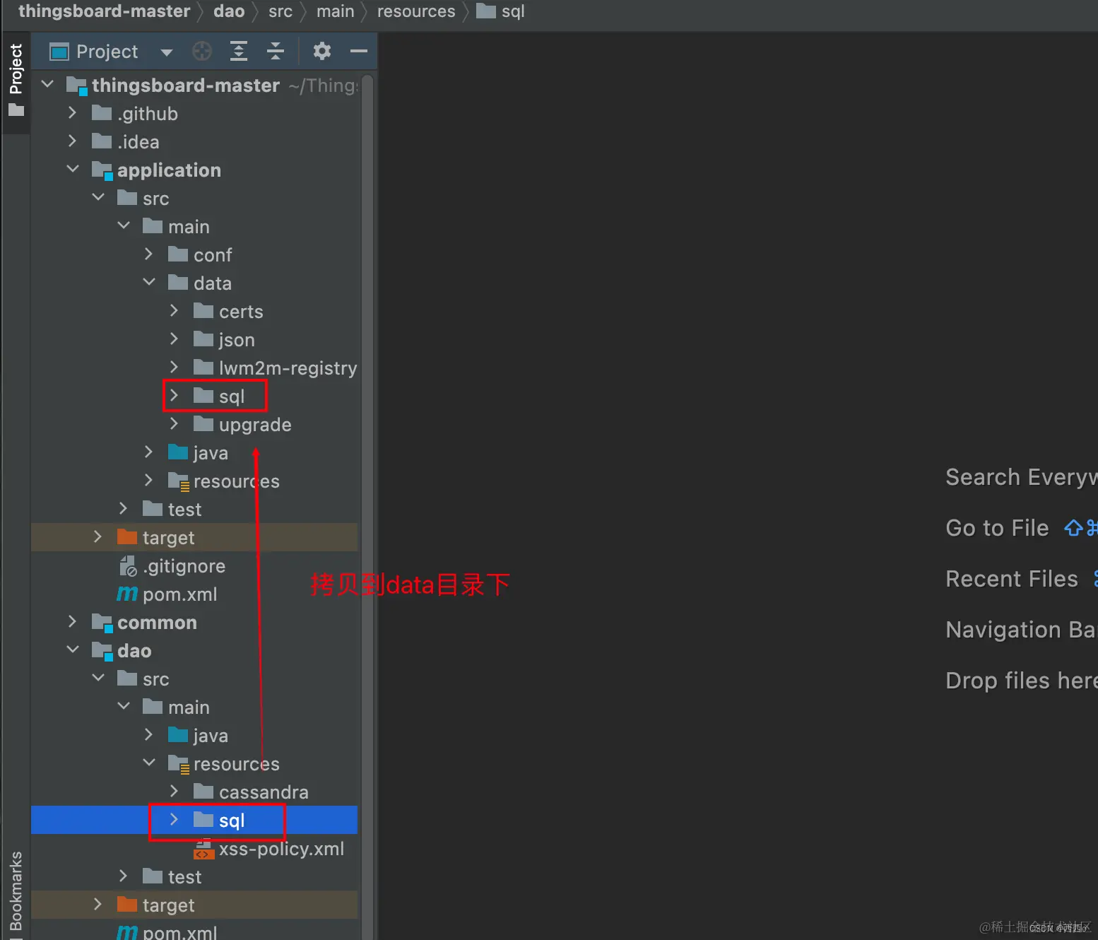 3、将dao目录下的到sql文件拷贝到application目录下的data中,用于数据的初始化