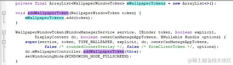 那么为什么WallpaperWindowToken.mShowWhenLocked变成了false呢,我也没看到WallpaperWindowToken.setShowWhenLocked方法有调用将WallpaperWindowToken.mShowWhenLocked设置为false啊?原来是设置系统壁纸的时候,直接重新创建了一个新的WallpaperWindowToken对象: