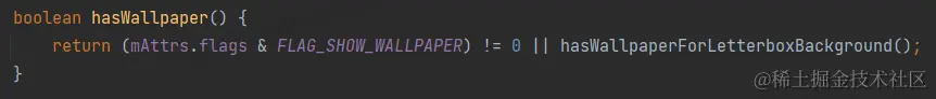 涉及LetterBox的情况比较少见,最常见的还是通过检查窗口是否配置了FLAG_SHOW_WALLPAPER这个窗口标志位来判断这个窗口是否支持显示壁纸,就比如Launcher。