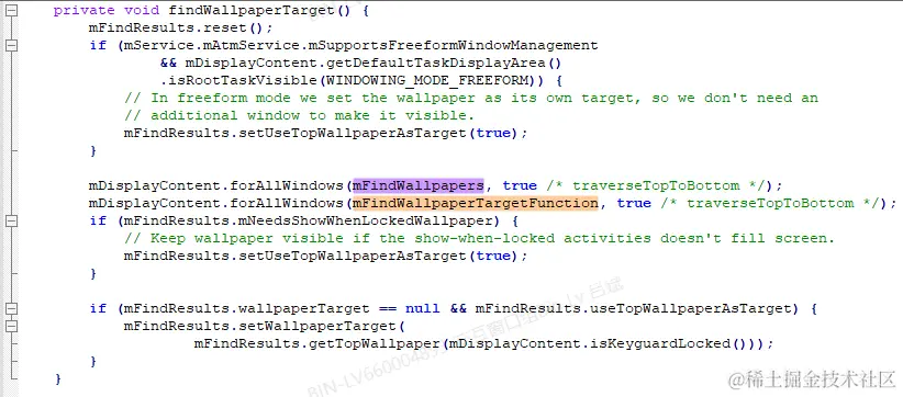这个方法用来寻找壁纸的目标窗口,是我们本篇文章的分析重点。