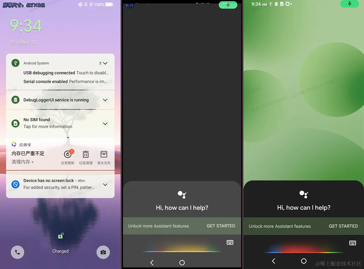 分析到这里感觉这应该是google的原生问题,但是pixel却没有问题,不过发现了一个区别,就是将系统壁纸和锁屏壁纸分别设置为不同的壁纸图片后,在锁屏界面长按Power唤起语音助手时,发现pixel显示的是壁纸是锁屏壁纸,而我们的机器要么显示的是系统壁纸,要么就不显示。
