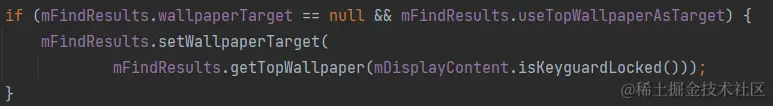 需要注意的是这里的返回值可能为空,我们分析的这个问题就是因为这里返回空所以出现了壁纸不可见的情况导致了黑屏,我们后续分析问题产生的原因。